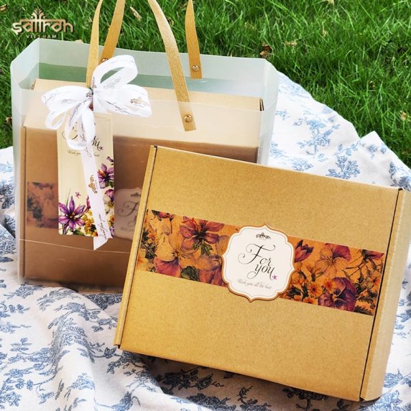 - Túi quà kèm nơ: Hộp và túi qua cao cấp kèm nơ tinh tế, trang trọng.